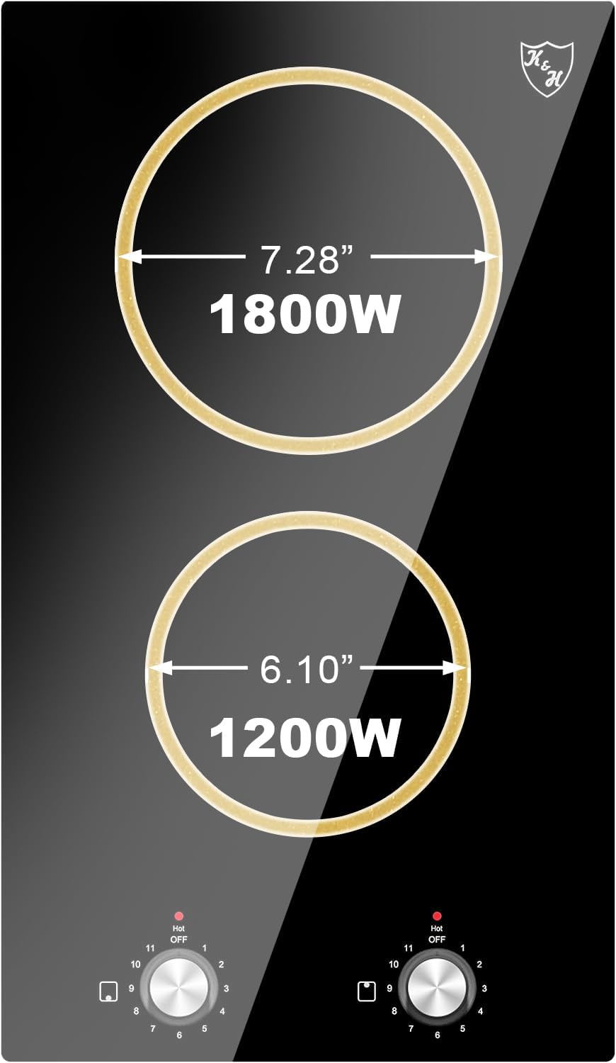 - HIGH POWER Powerful 11 power levels per cooking zone will be perfect to make any kind of meals from simmering to roast. Rating Voltage is 208-240V (2x 110V), 50/60Hz with maximum power output of 3000 Watt. Because of high voltage the electric plug is not included so we suggest to be hardwired directly onto 240V outlet.