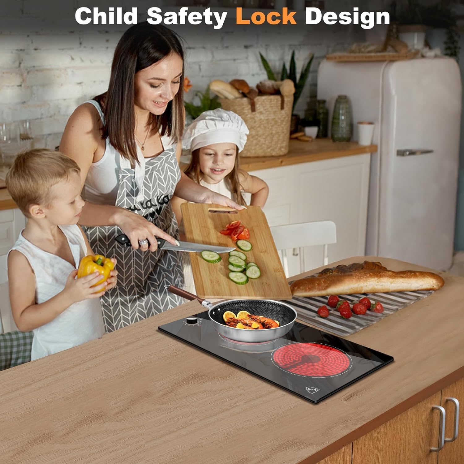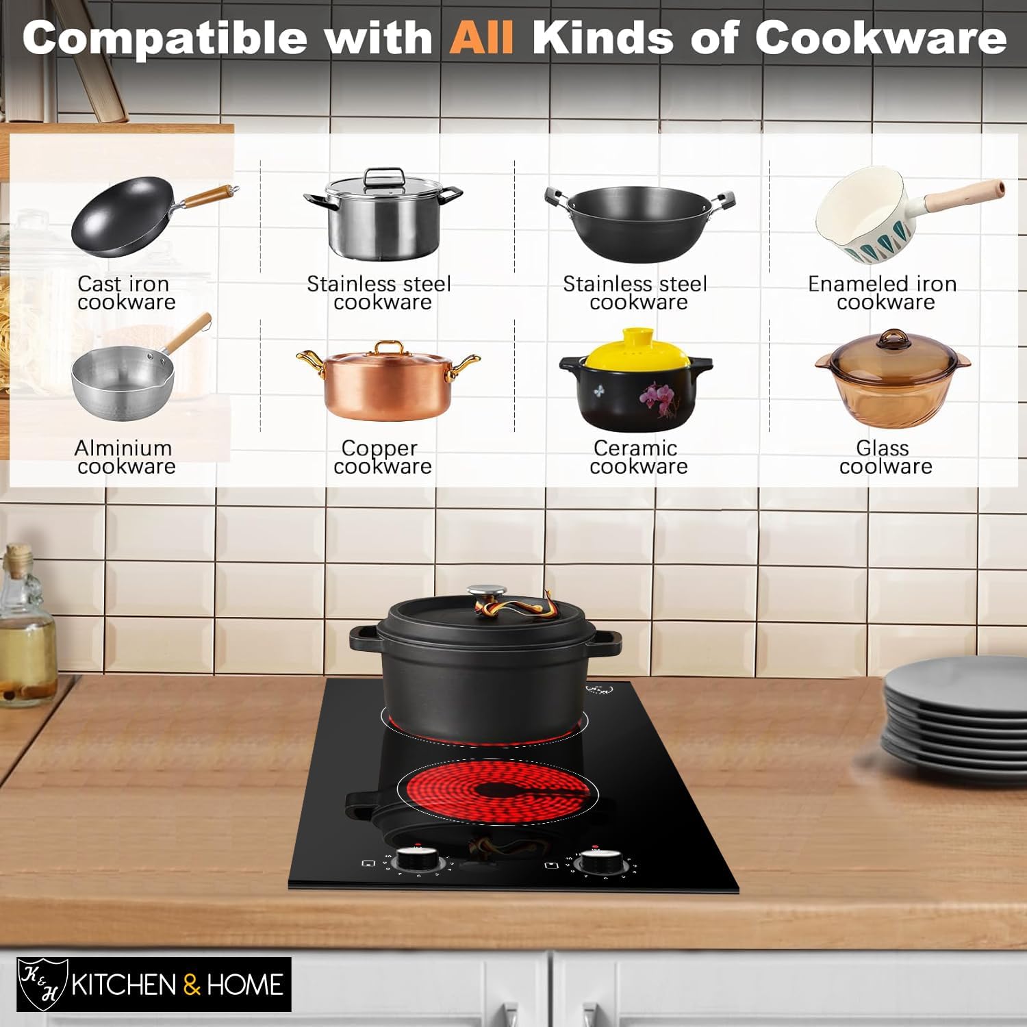 - FOR ALL COOKWARE Two burners portable electric built-in stove top with scratch-resistant ceramic glass top. Compatible with any kind of cookware which will be one of the important decisions to buy this raised.