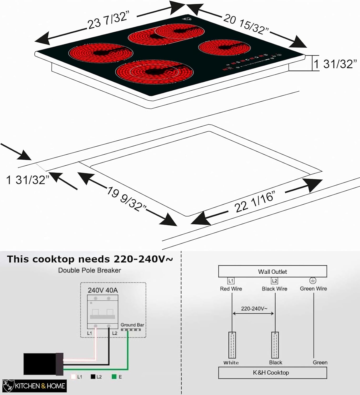 - NORTH AMERICAN NORM German designed / developed K&H cooktop from Kitchen and Home.