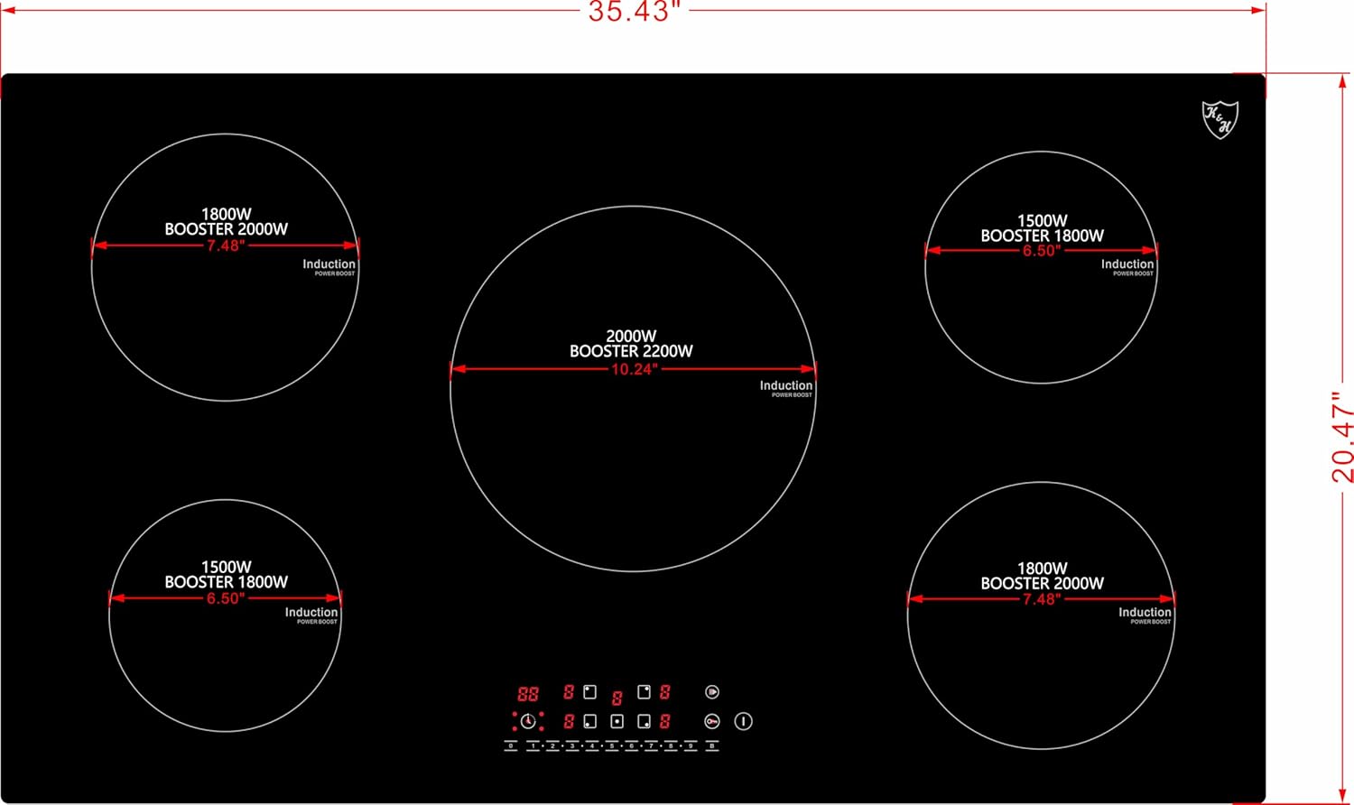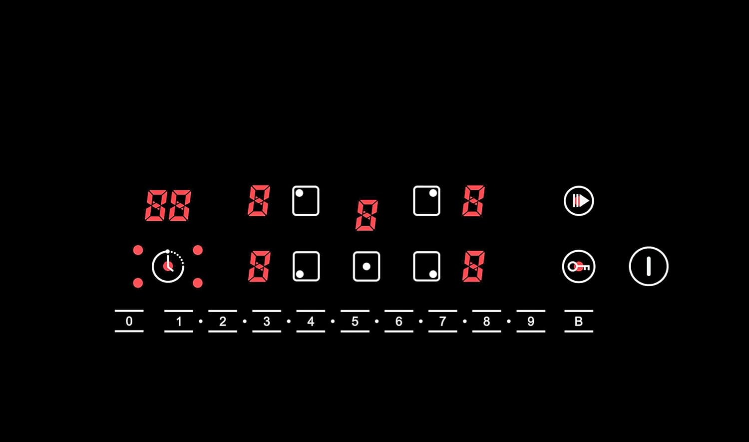 - POWER BOOSTER for every cooking zone separatly can be used only ones per side. Four burners induction electric built-in stove top with scratch-resistant ceramic glass top.