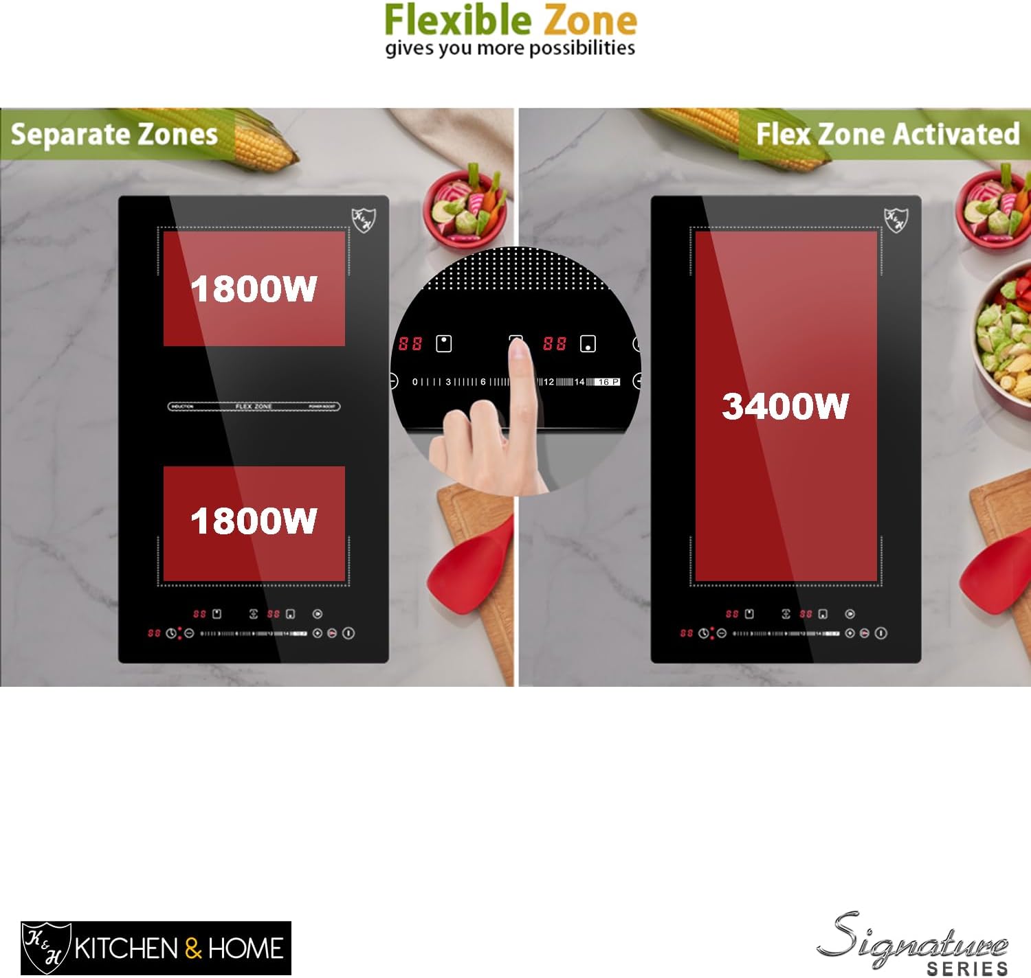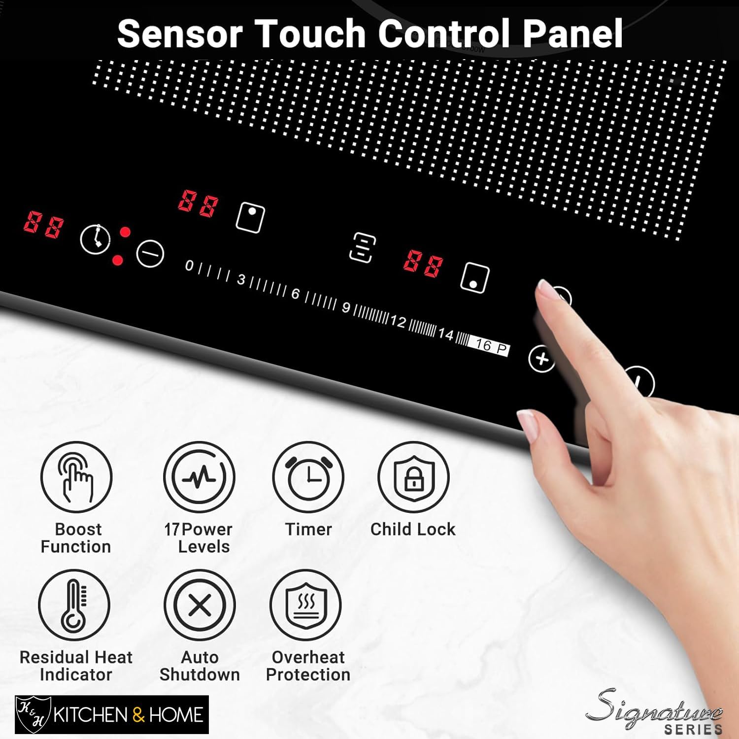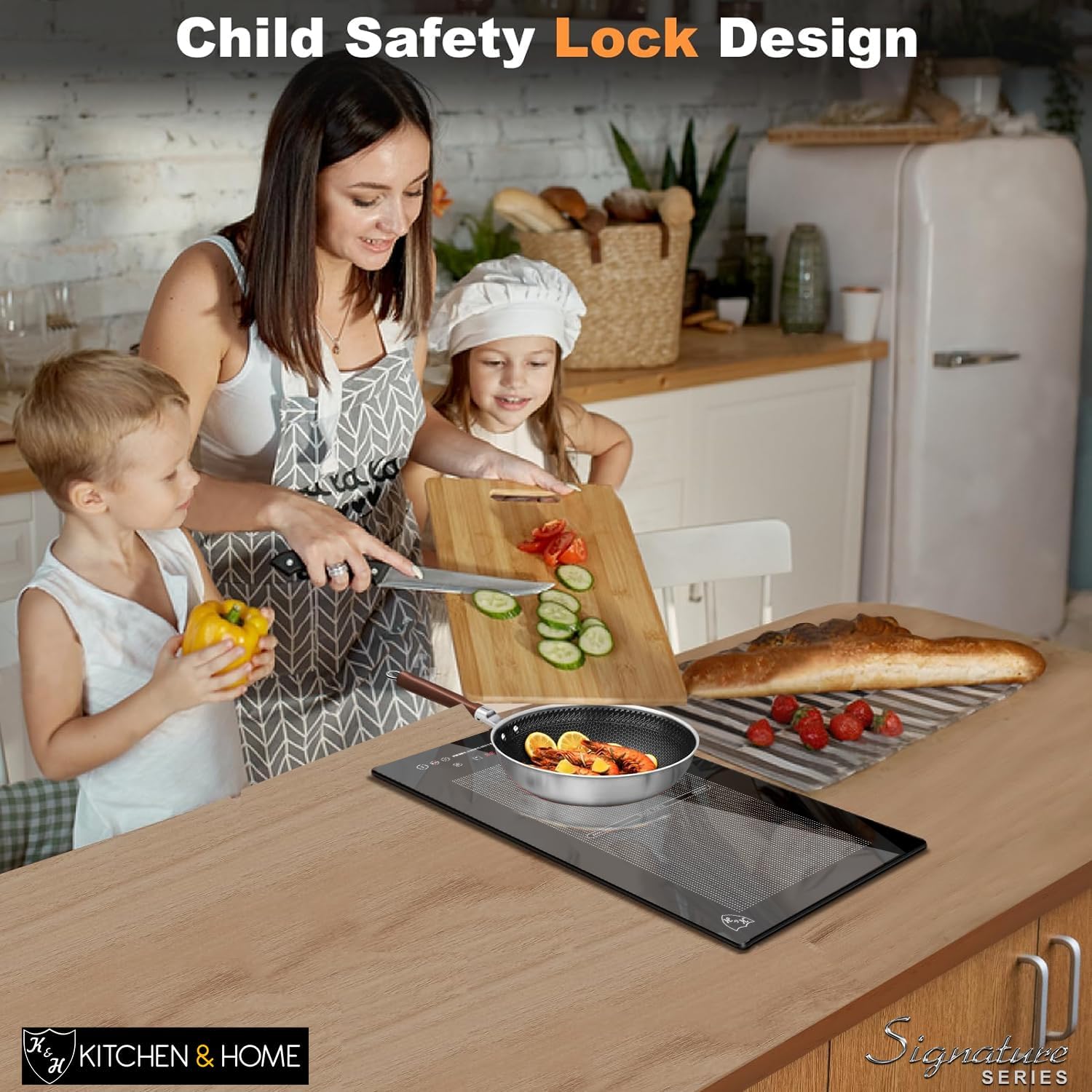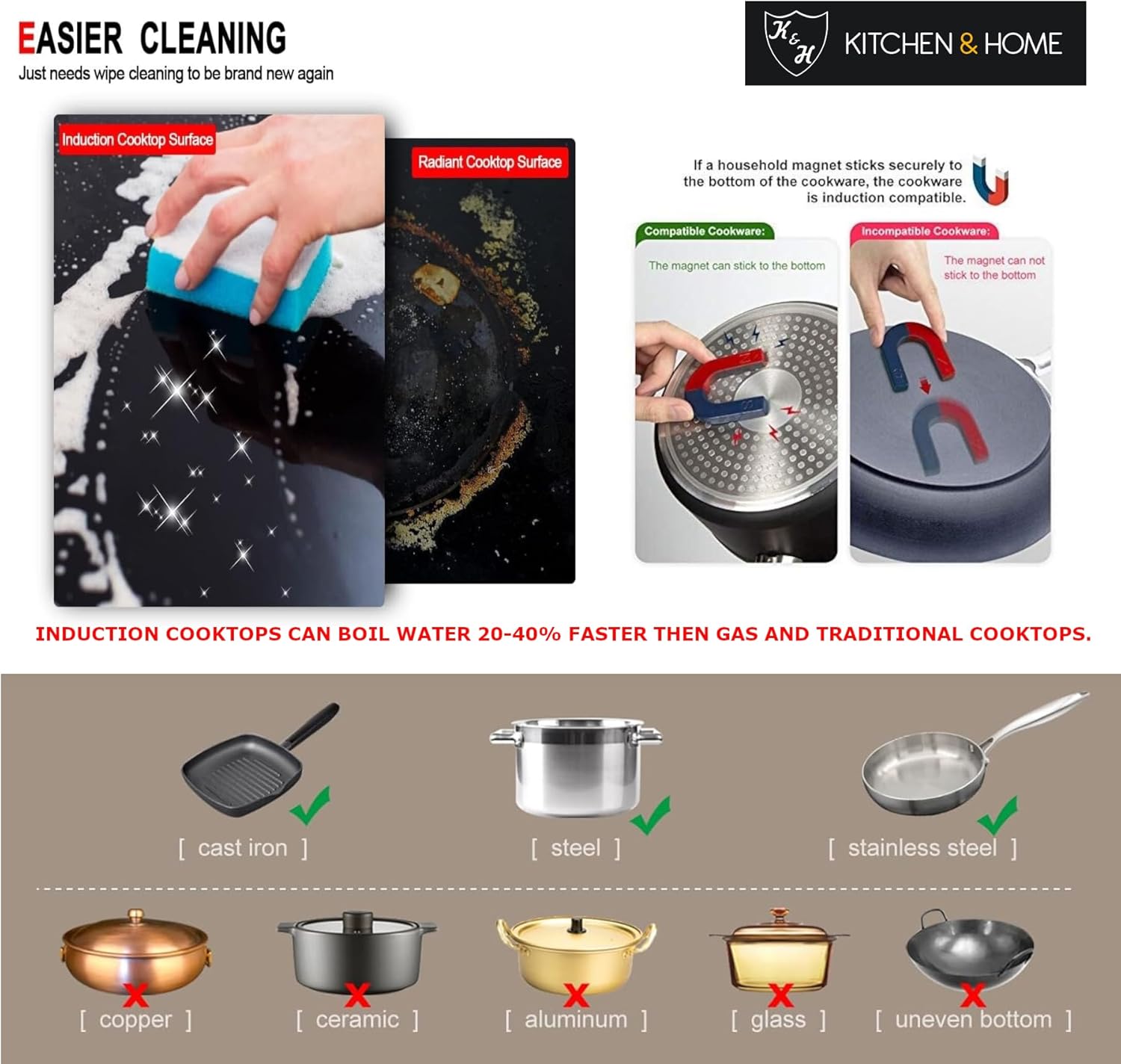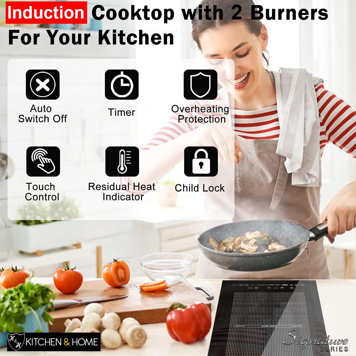 - BUILT-IN Two burners induction portable electric built-in stove top with scratch-resistant ceramic glass top.