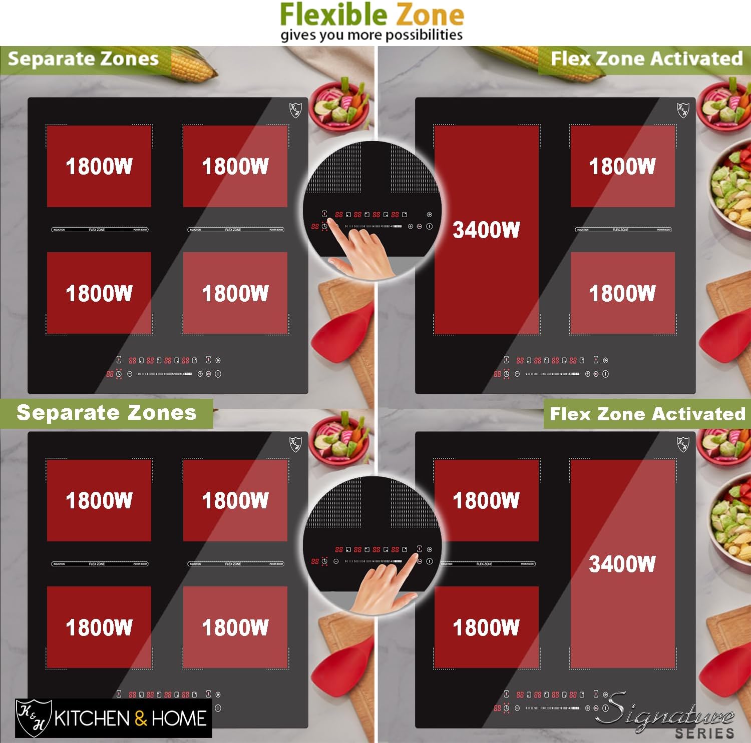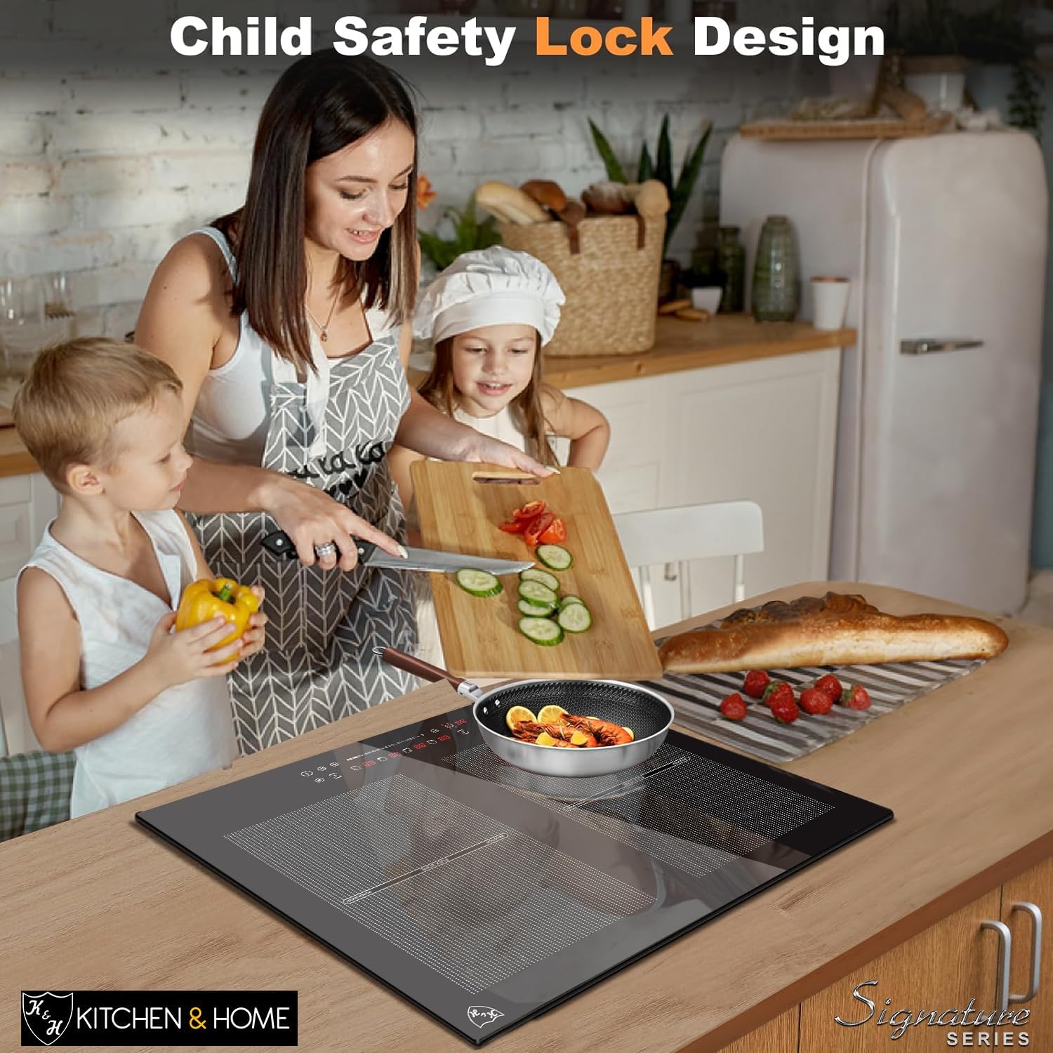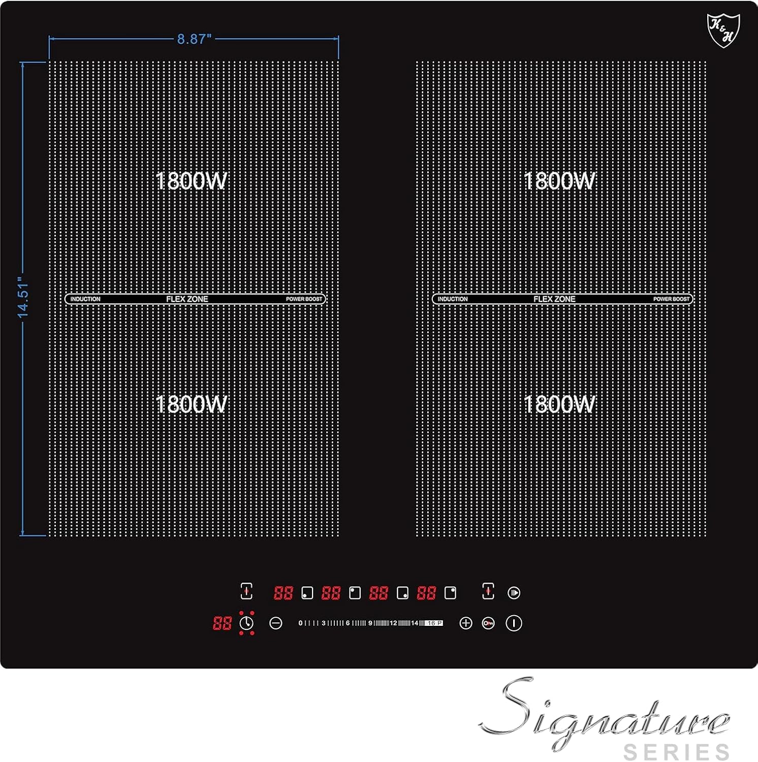 K&H SIGNATURE SERIES 4 Burner 24 Inch Built-in Induction FLEX Electric Stove Top Ceramic Cooktop SLIDER Touch Control 240V 6800W IN24-6004FLX