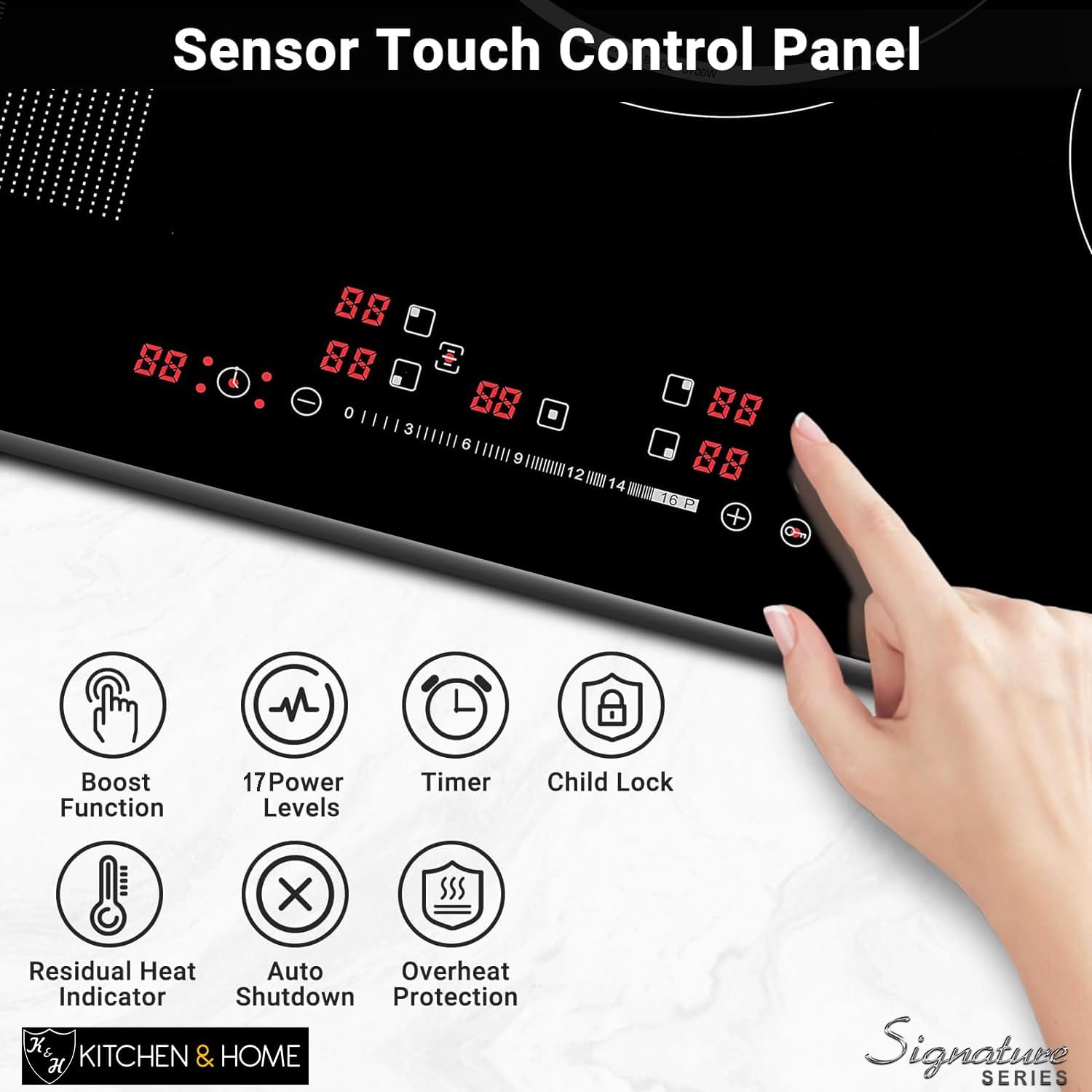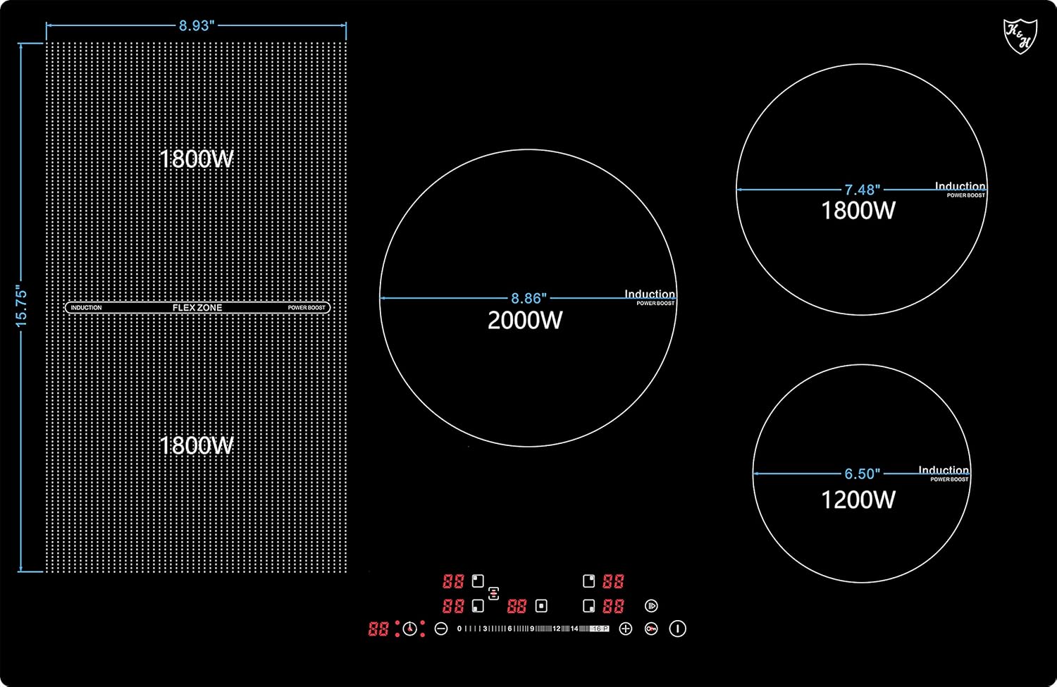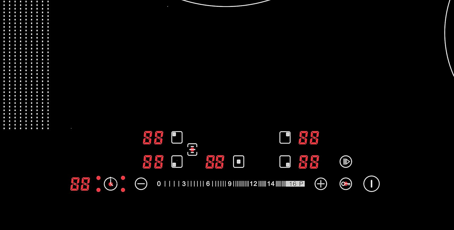 - POWER BOOSTER for every cooking zone separatly can be used only ones per side. Four burners induction electric built-in stove top with scratch-resistant ceramic glass top.